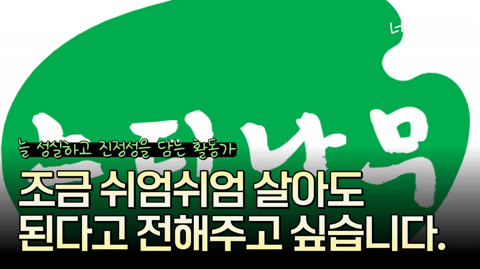 늘~너무 열심히 살기에 조금 쉬엄쉬엄 살아도 된다고 전해주고 싶습니다.