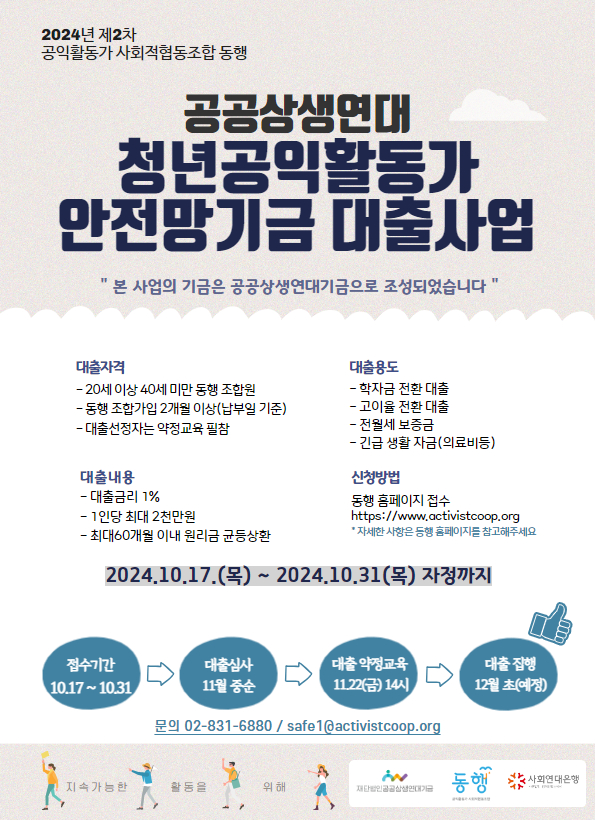 * 공공상생연대 청년공익활동가 안전망 기금으로 대출 전환을 신청하신 조합원님께서는