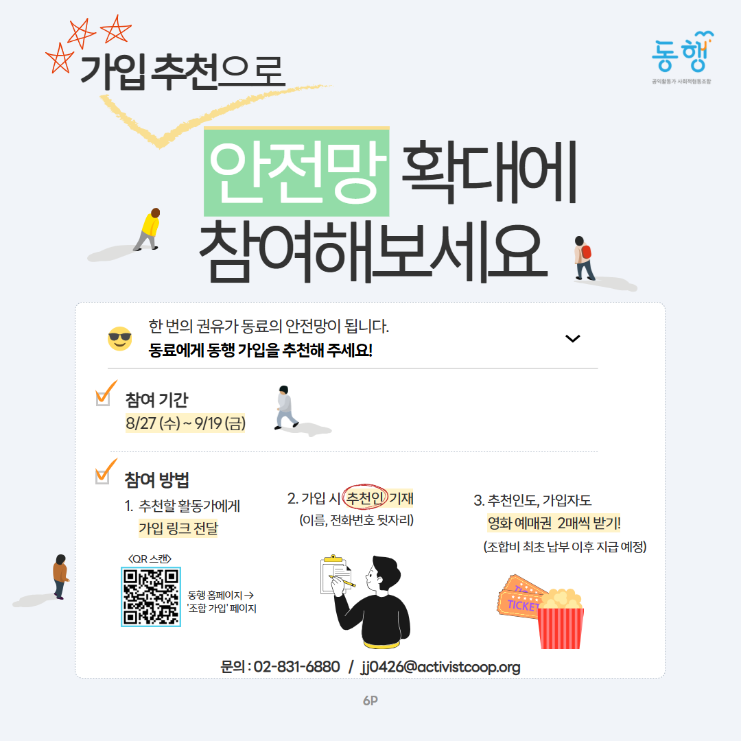 우리 주변의 공익활동가들이 동행의 안전망을 경험할 수 있도록, 가입을 권유해 주세요.