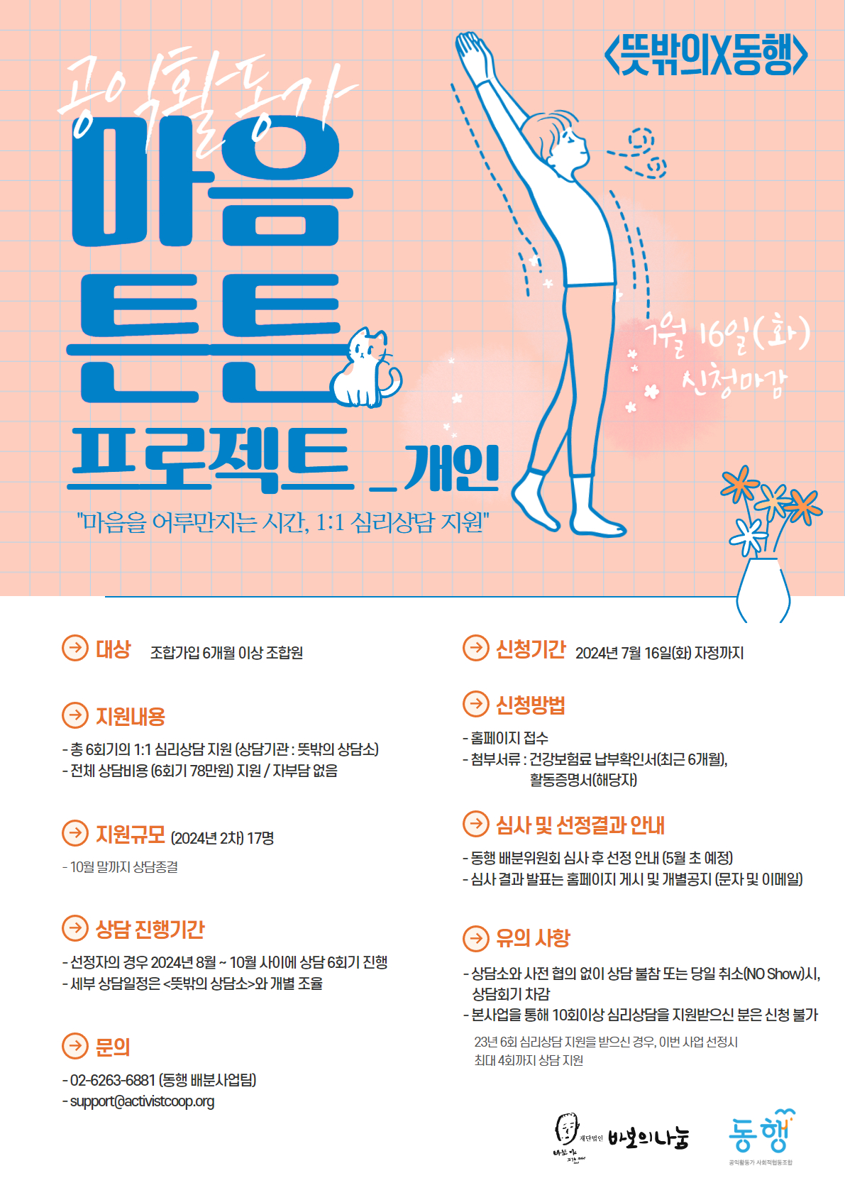 - 총 6회기의 1:1 심리상담 지원 (상담기관 : 뜻밖의상담소)