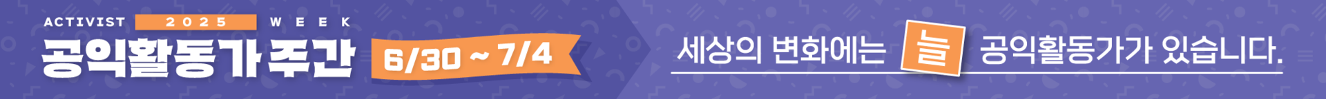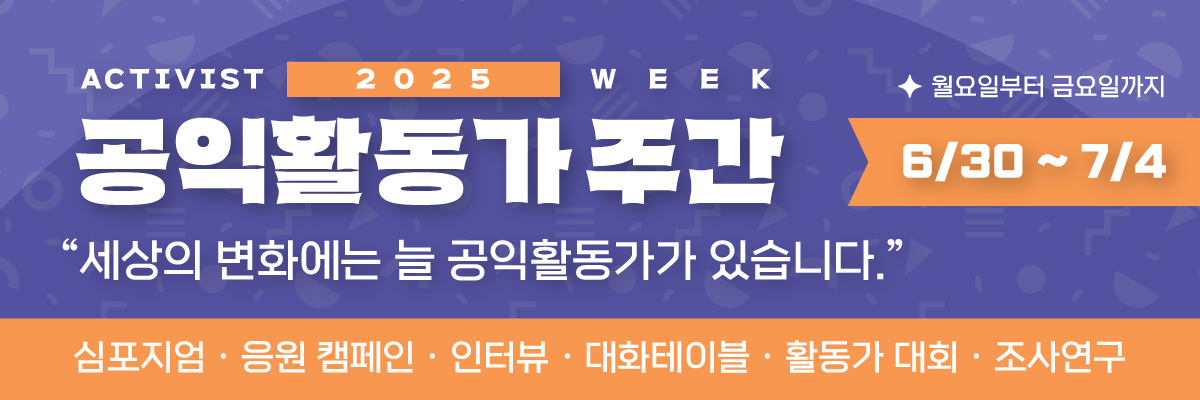 7월 첫째주에 진행되는 「2025 공익활동가주간」은 “공익활동가의 지역, 영역, 세대를 잇는 사회적 지지와 연대의 플랫폼“ 으로서